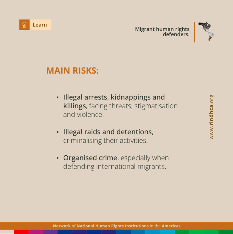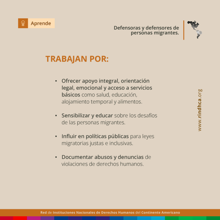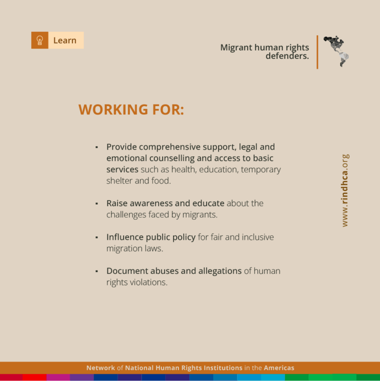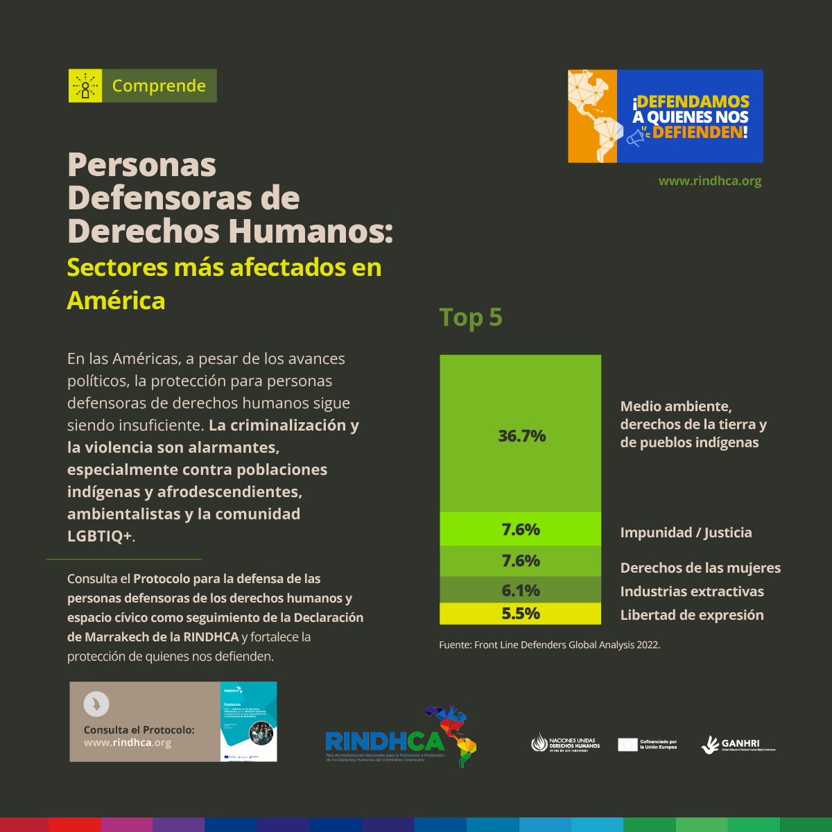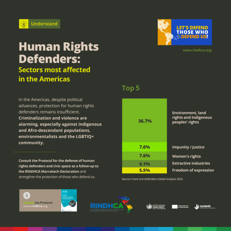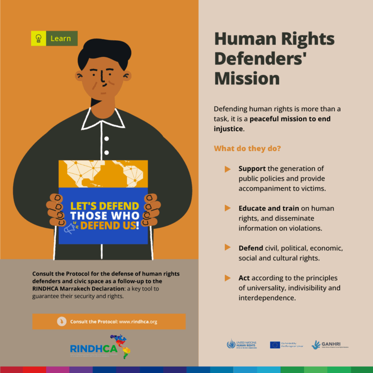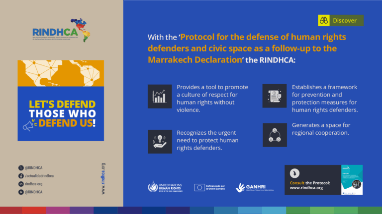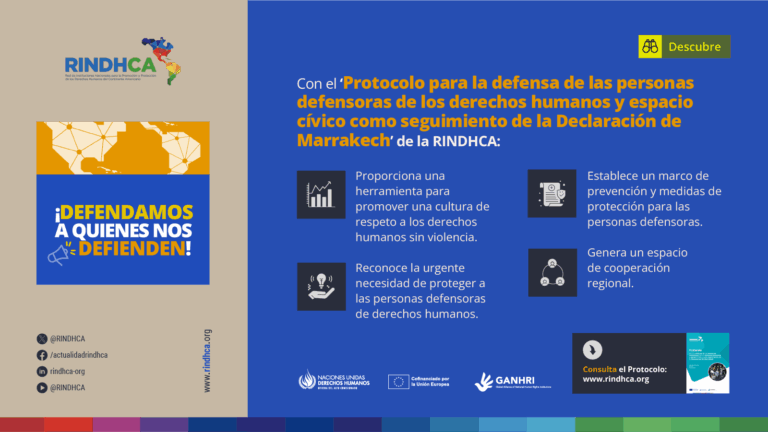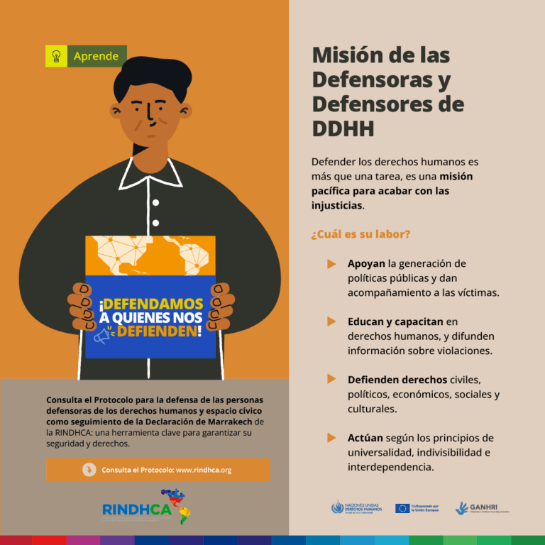 Basada en el Protocolo de Defensa y el Modelo de Reportes, la campaña ‘Defensa firme a las Voces que protegen a la humanidad y su dignidad” de la RINDHCA tiene el objetivo de fortalecer la protección de las personas defensoras de los derechos humanos y el espacio cívico en las Américas. A través de productos de comunicación y su difusión estratégica, esta campaña busca remarcar la valiosa labor de quienes arriesgan sus vidas por la justicia y la equidad, y accionar a agentes responsables regionales a crear mecanismos de defensa y protección de personas defensoras de los derechos humanos.