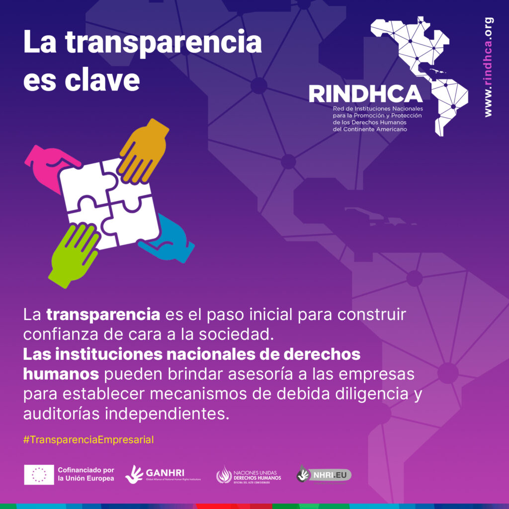 La transparencia es el paso inicial para construir confianza de cara a la sociedad. Las instituciones nacionales de derechos humanos pueden brindar asesoría a las empresas para establecer mecanismos de debida diligencia y auditorías independientes.