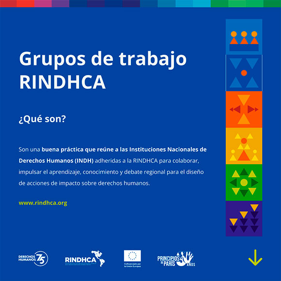 Somos, la Red de Instituciones Nacionales para la Promoción y Protección de los Derechos Humanos del Continente Americano (RINDHCA), organización regional miembro de la Alianza Global de Instituciones Nacionales de Derechos Humanos (GANHRI) y que reúne a Oficinas de Ombudsman Americanas, establecidas según los Principios de París, con el objetivo de cooperar directamente con la Alianza Global de Instituciones Nacionales de Derechos Humanos (GANHRI) y con la Oficina del Alto Comisionado de Naciones Unidas para los Derechos Humanos (ACNUDH). |