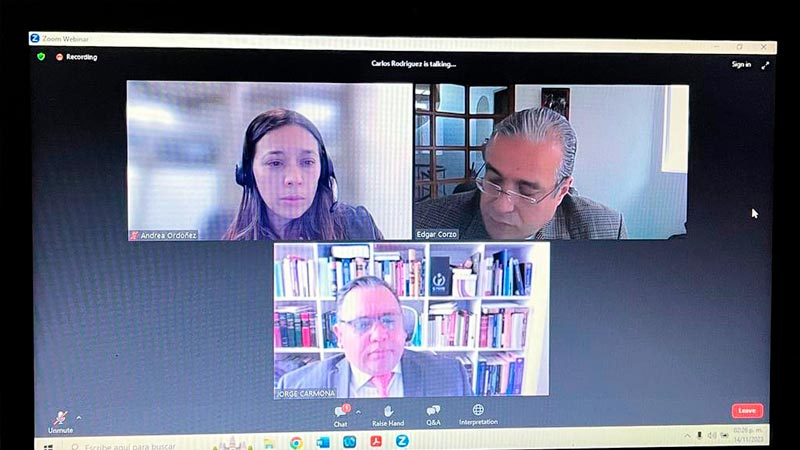 En la imagen aparecen Edgar Corzo, presidente del Comité para la Protección de los Derechos de todos los Trabajadores Migratorios y de sus Familiares, Jorge Carmona, Investigador de Instituto de Investigaciones Jurídicas de la UNAM, quien está ayudando a la redacción de la OG6, y Andrea Ordoñez, de la Oficina Del Alto Comisionado De Las Naciones Unidas Para Los Derechos Humanos en Santiago de Chile.