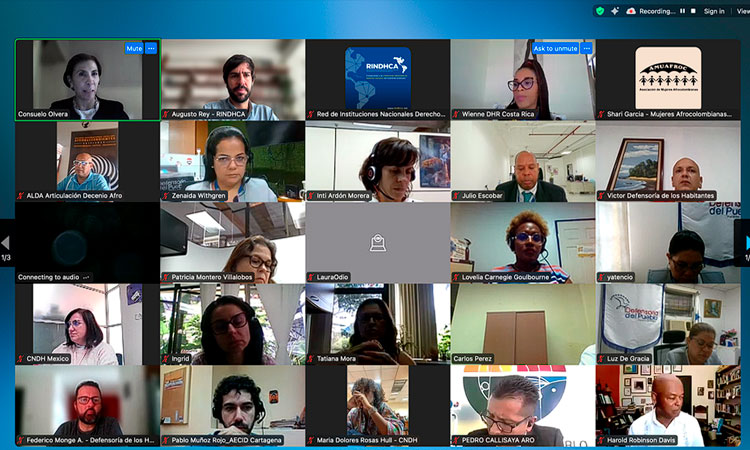 El miércoles 4 de setiembre se celebró la inauguración y la primera sesión del Programa de sensibilización sobre derechos de las personas y pueblos afrodescendientes en América Latina para las INDH de la región, organizado por la RINDHCA, la Defensoría de los Habitantes de Costa Rica, la Asociación de Mujeres Afrocolombianas (AMUAFROC) y la Articulación Latinoamericana para el Decenio Afrodescendiente (ALDA), con apoyo de la Agencia Española de Cooperación Internacional para el Desarrollo (AECID). Se contó con la participación de más de 90 funcionarios de diversas INDH de la región que entre sus líneas de trabajo se encuentra la promoción y defensa de los derechos humanos de las personas, comunidades y pueblos afrodescendientes.
